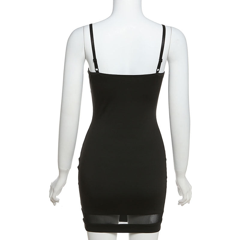 This sexy dress features a solid color, spaghetti strap, backless, patchwork, sleeveless mini dress for women. Great for clubs, nights out, street, cocktails, parties, etc. You can pair it with boots, high heels, coats, and jackets, making you more charming and sexy.